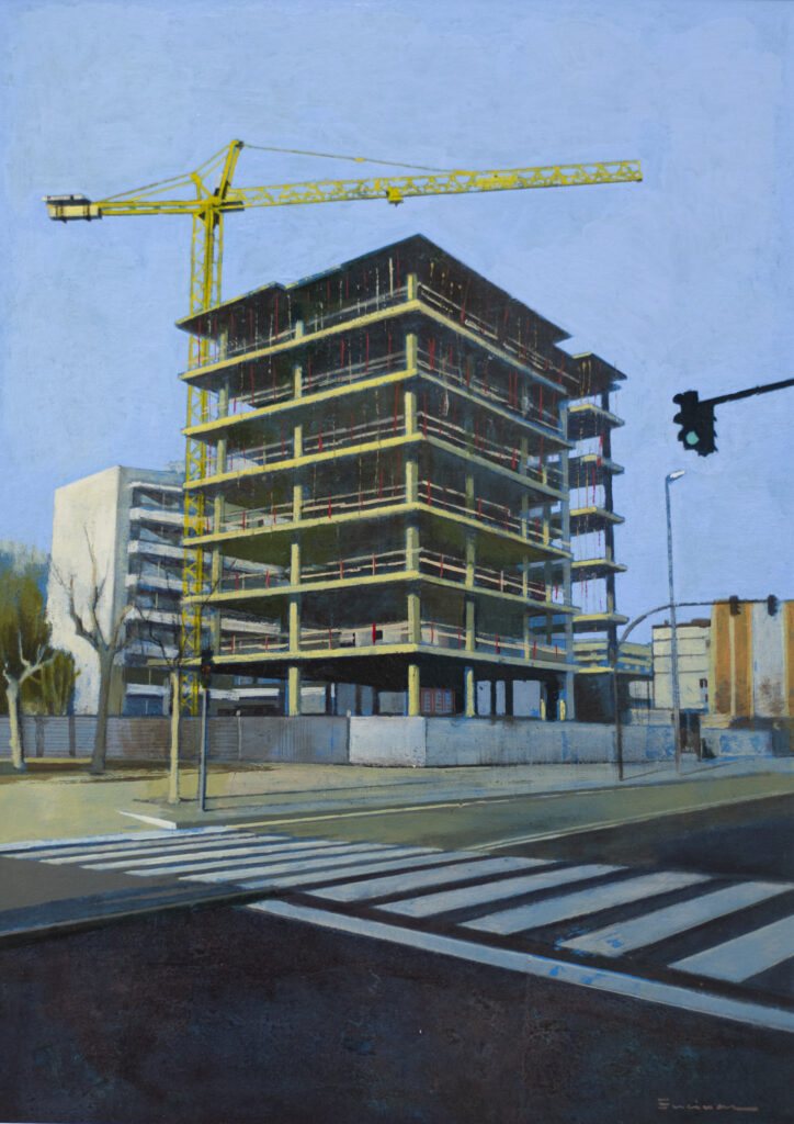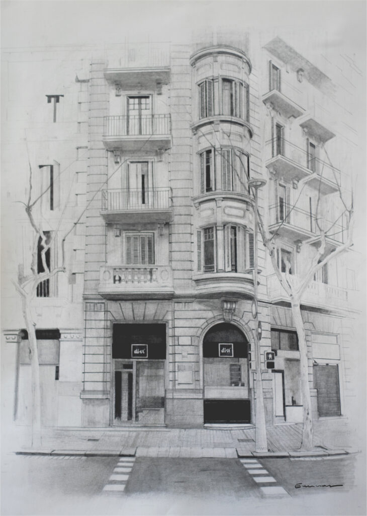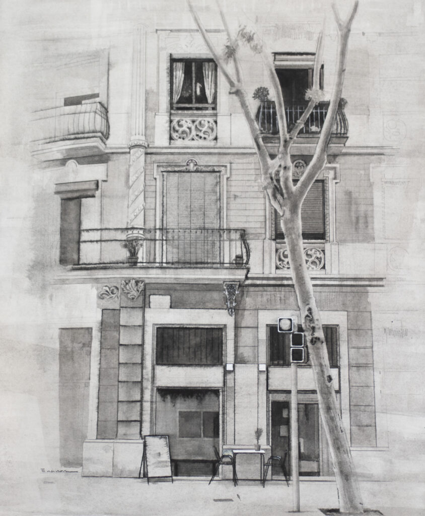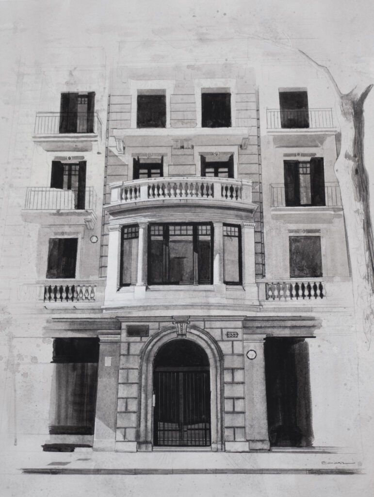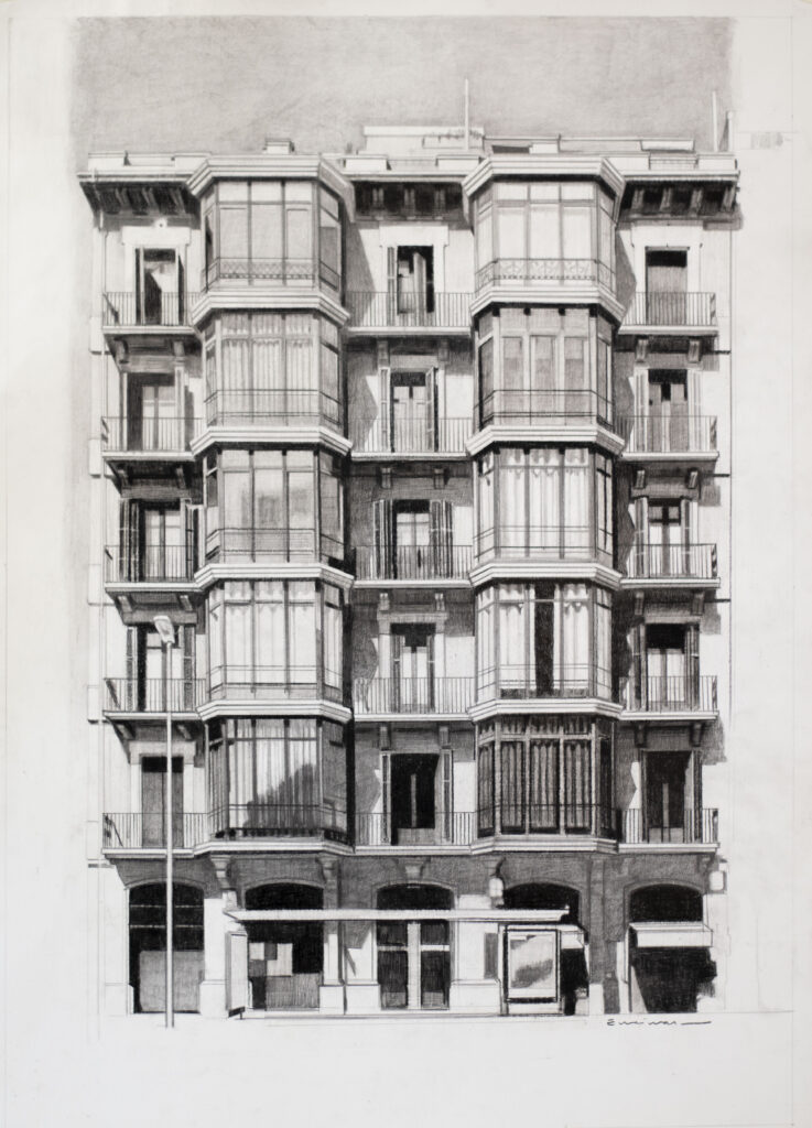 Aunque el Eixample y su arquitectura forman una referencia reconocible dentro de esta serie, la mirada se amplía hacia otros edificios y espacios urbanos que no responden a una única tipología. La arquitectura se presenta desde una sensibilidad serena, donde la estructura, la proporción y la luz dialogan con el silencio de las fachadas y las calles, dando lugar a una interpretación contemporánea del paisaje urbano como espacio de memoria y contemplación.