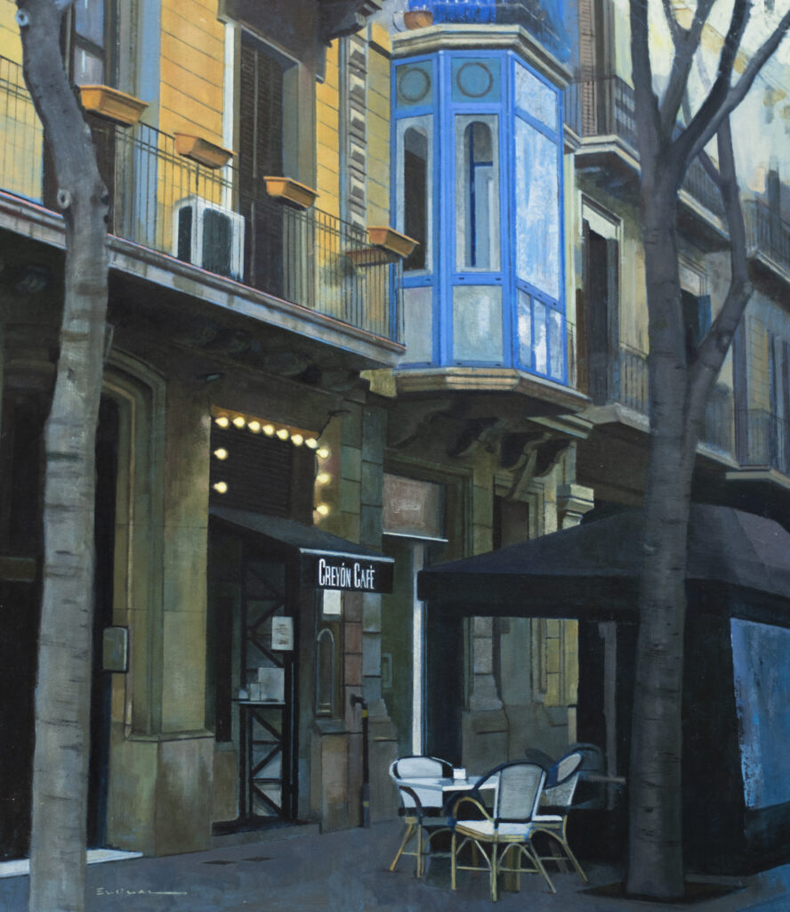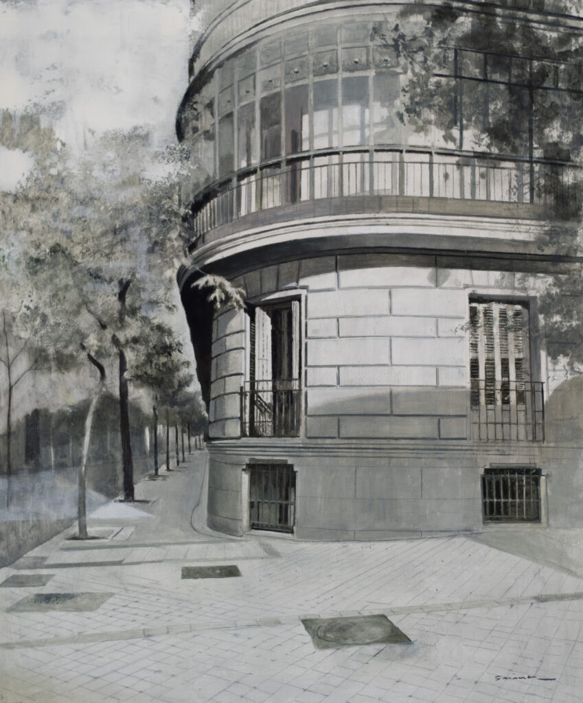 Paisaje urbano reúne obras centradas en la arquitectura y el entorno urbano de Barcelona y otros contextos urbanos observados por el artista. Edificios, calles y estructuras de distintas épocas y estilos conviven en una lectura pausada de la ciudad, donde el patrimonio arquitectónico se manifiesta como parte del paisaje cotidiano.